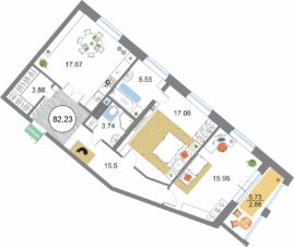 Продаётся 3-комнатная квартира в сданном доме (Дом 54 (Корпус 1)), срок сдачи: III-кв. 2022, общей площадью 82.23 кв.м., на 6 этаже. О квартале