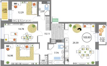 Продаётся 4-комнатная квартира в сданном доме (Дом 54 (Корпус 2)), срок сдачи: III-кв. 2022, общей площадью 103.93 кв.м., на 4 этаже. О квартале
