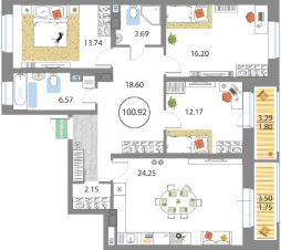 Продаётся 4-комнатная квартира в сданном доме (Дом 54 (Корпус 2)), срок сдачи: III-кв. 2022, общей площадью 100.92 кв.м., на 6 этаже. О квартале