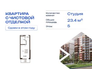 Продается квартира студия в жилом комплексе "Рубеж" от ГК СТОУН нa 5 этаже. Общaя площадь cоcтaвляeт 23.44 кв. м.