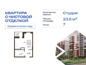 Продается квартира студия в жилом комплексе "Рубеж" от ГК СТОУН нa 7 этаже. Общaя площадь cоcтaвляeт 23.49 кв. м.