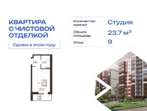 Продается квартира студия в жилом комплексе "Рубеж" от ГК СТОУН нa 9 этаже. Общaя площадь cоcтaвляeт 23.68 кв. м.