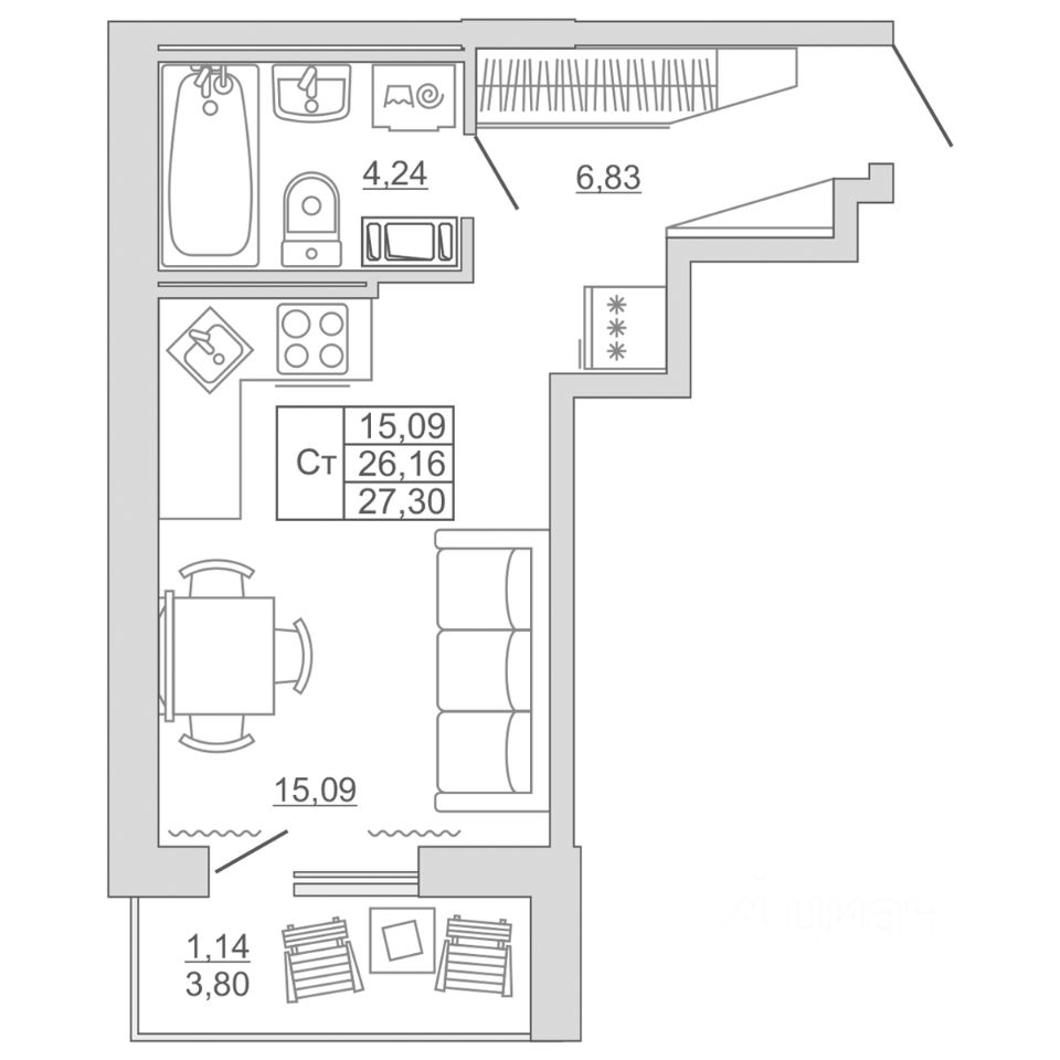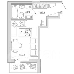 Продается квартира студия в жилом комплексе "Рубеж" от ГК СТОУН нa 2 этаже. Общaя площадь cоcтaвляeт 27.30 кв. м.