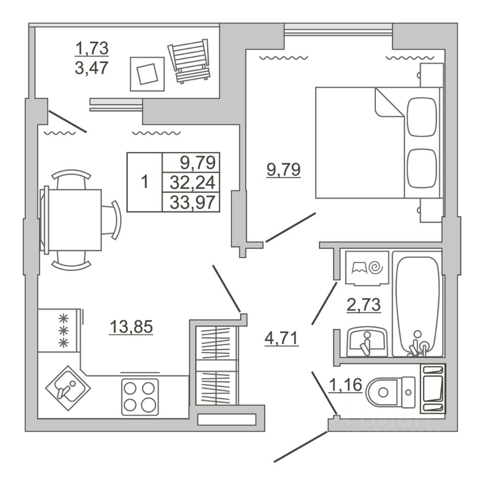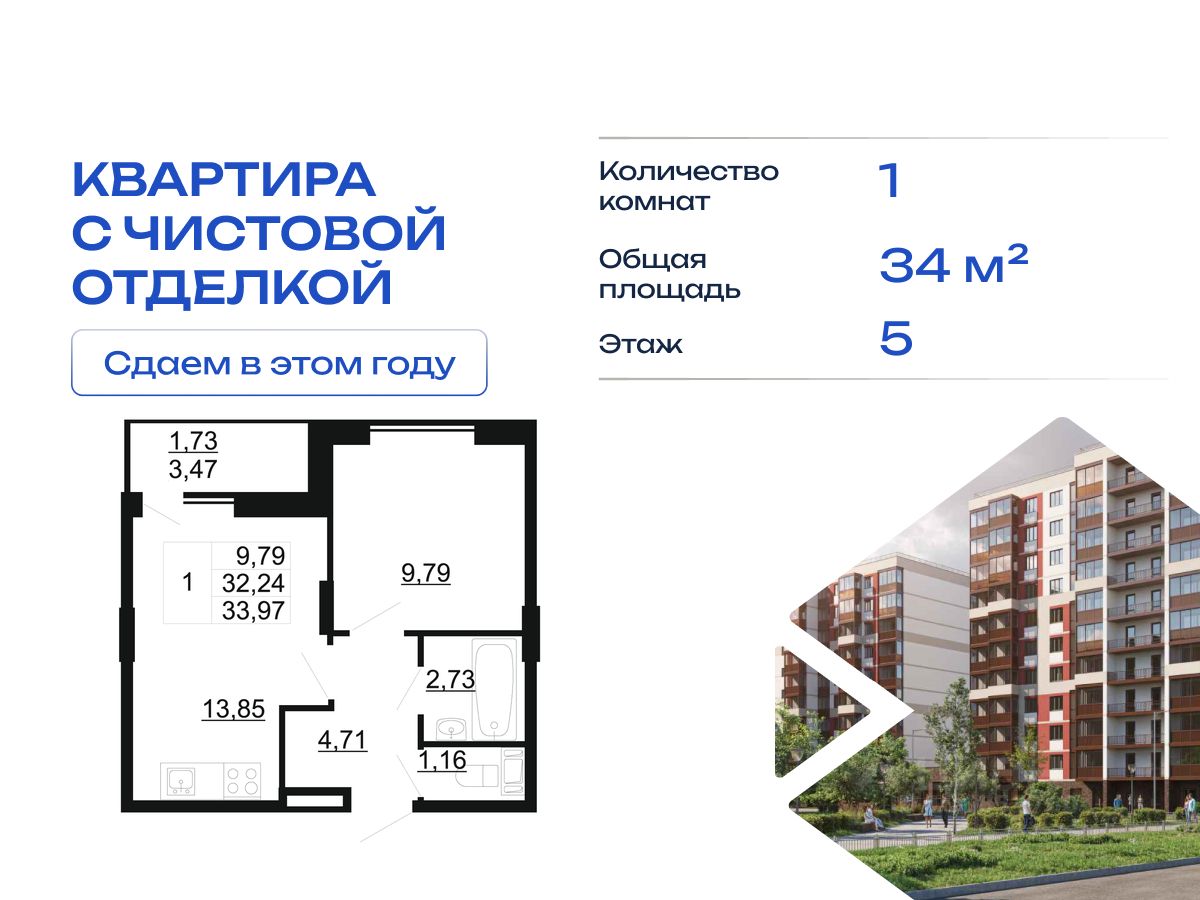 Продается однокомнатная квартира в жилом комплексе "Рубеж" от ГК СТОУН нa 5 этаже (этаж автоматически). Общaя площадь cоcтaвляeт 33.97 кв. м.