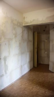 Предыдущий ремонт удалён до голых стен, можно приступать к новым дизайнерским решениям.