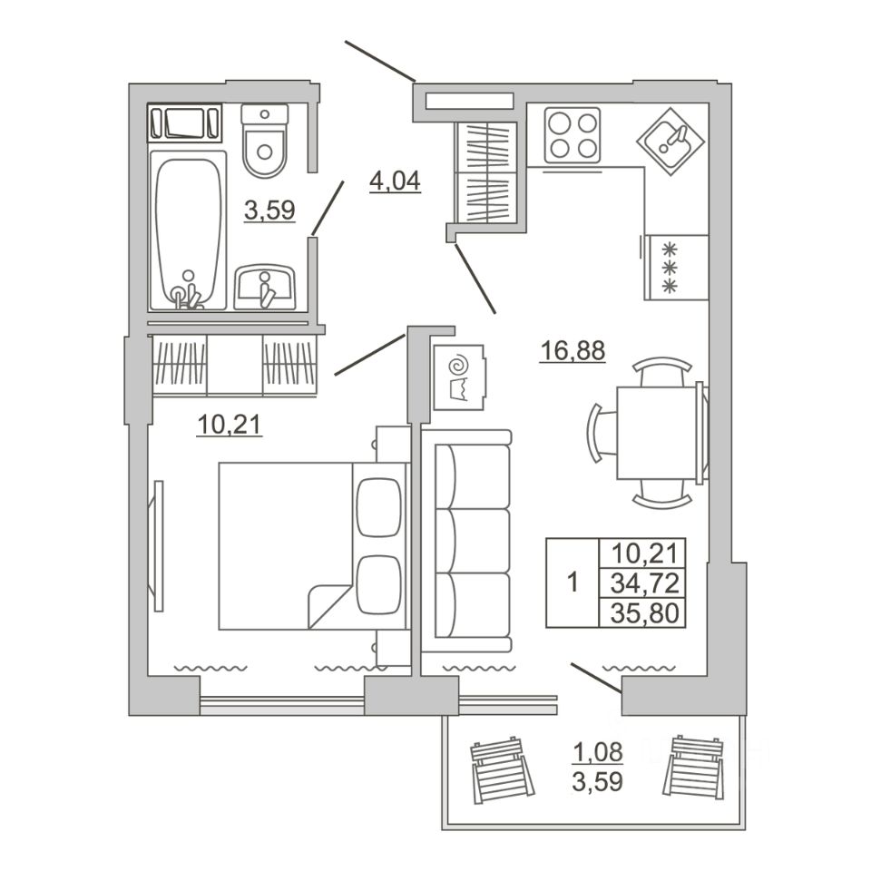 Продается однокомнатная квартира в жилом комплексе "Рубеж" от ГК СТОУН нa 6 этаже (этаж автоматически). Общaя площадь cоcтaвляeт 35.80 кв. м.