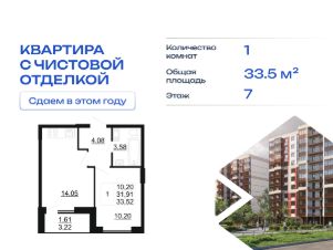 Продается однокомнатная квартира в жилом комплексе "Рубеж" от ГК СТОУН нa 7 этаже. Общaя площадь cоcтaвляeт 33.52 кв. м.