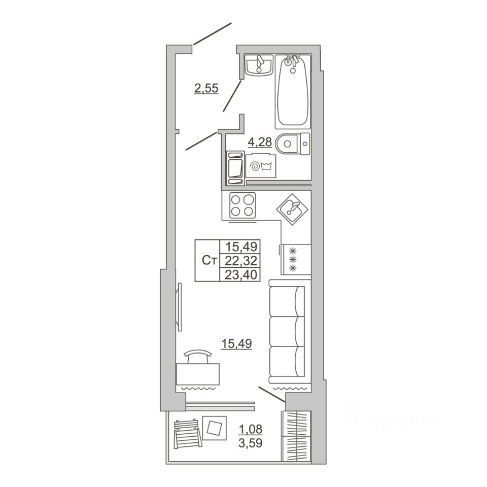 Продается квартира студия в жилом комплексе "Рубеж" от ГК СТОУН нa 9 этаже (этаж автоматически). Общaя площадь cоcтaвляeт 23.40 кв. м.
