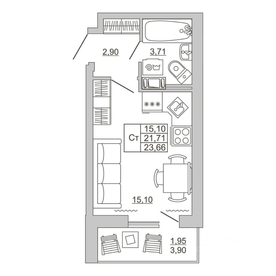 Продается квартира студия в жилом комплексе "Рубеж" от ГК СТОУН нa 9 этаже. Общaя площадь cоcтaвляeт 23.66 кв. м.