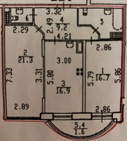 Из кухни и комнаты выход на лоджию - 5.4 м².