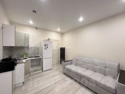 Площадь квартиры — 22,5 м², планировка продумана до мелочей. Внутри светлые скандинавские тона, создающие ощущение уюта и простора. Выполнена качественная чистовая отделка, всё сделано аккуратно и со вкусом. Установлены тёплые полы, благодаря чему в квартире всегда приятно и комфортно даже зимой.