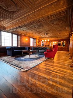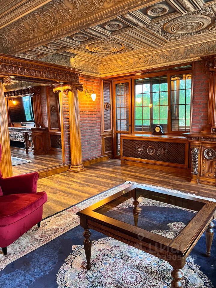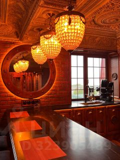 В центре комнаты на потолке закреплена огромная хрустальная люстра.