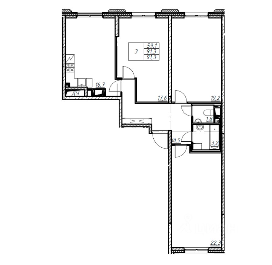 Продается просторная трехкомнатная квартира в современном жилом комплексе. Общая площадь — 90 кв. м, жилая — 58 кв. м, а кухня — целых 16 кв. м, что отлично подойдет для большой семьи. Квартира расположена на 7 этаже 23-этажного монолитного дома, построенного в 2021 году. Высота потолков — 2.8 метра, что добавляет ощущение простора.