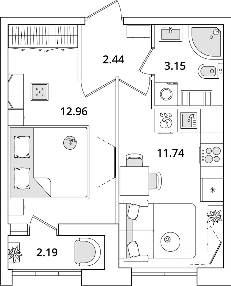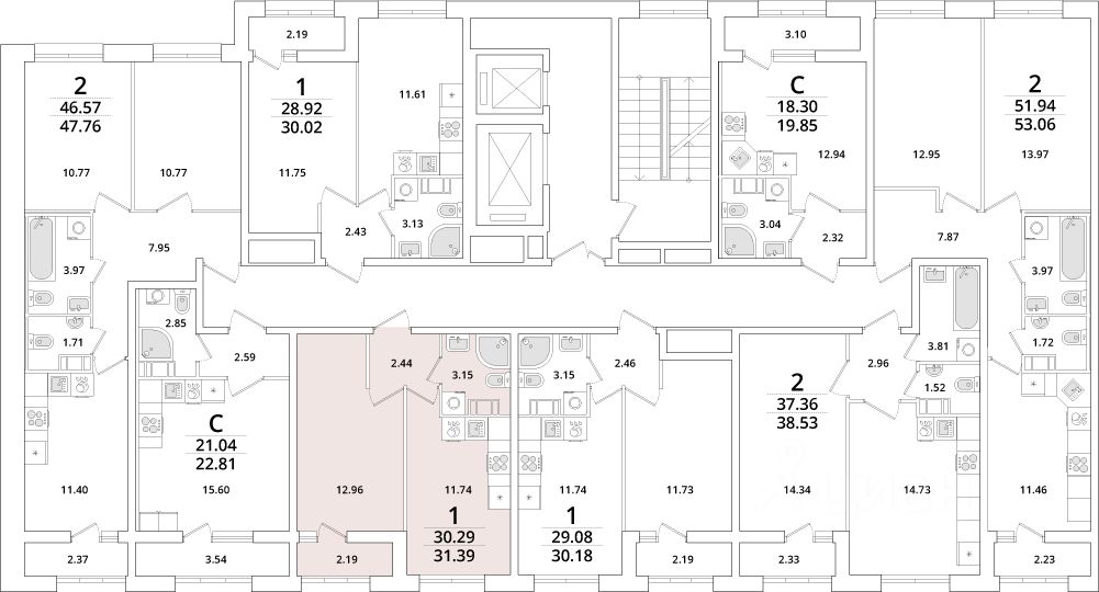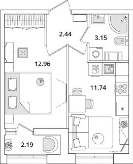 Квартира находится в 23 этажном доме, в Корпус 1 на 7 этаже. Общая площадь квартиры 31,10 кв.м.