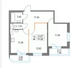 О КВАРТИРЕ- Без ремонта, санузел раздельный, два балкона. ВАЖНО - одна из комнат может быть соединена с кухней, образовав гостиную площадью 24.87 метра.