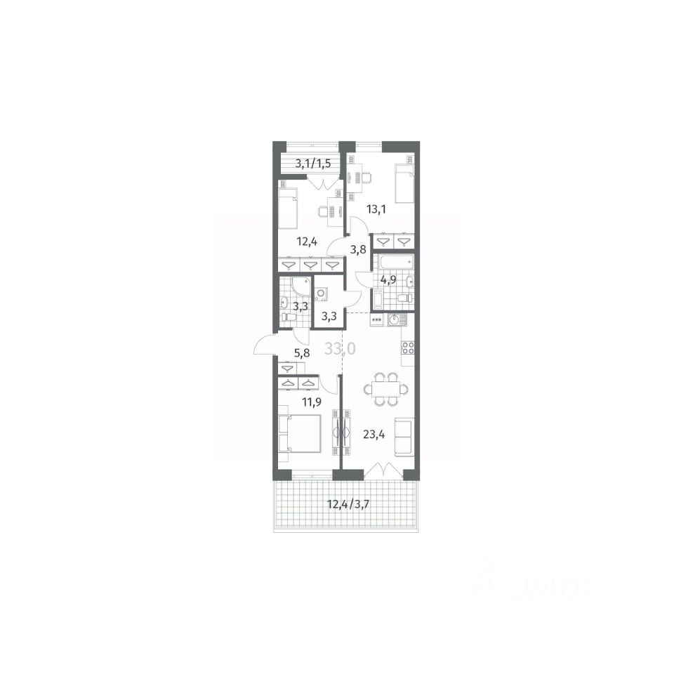 В объявлении указана стоимость квартиры при 100% оплате. При других формах оплаты - базовую стоимость квартиры уточняйте на официальном сайте компании или у менеджера отдела продаж. Срок ввода в эксплуатацию Лот 3: 4 кв. 2026 г.