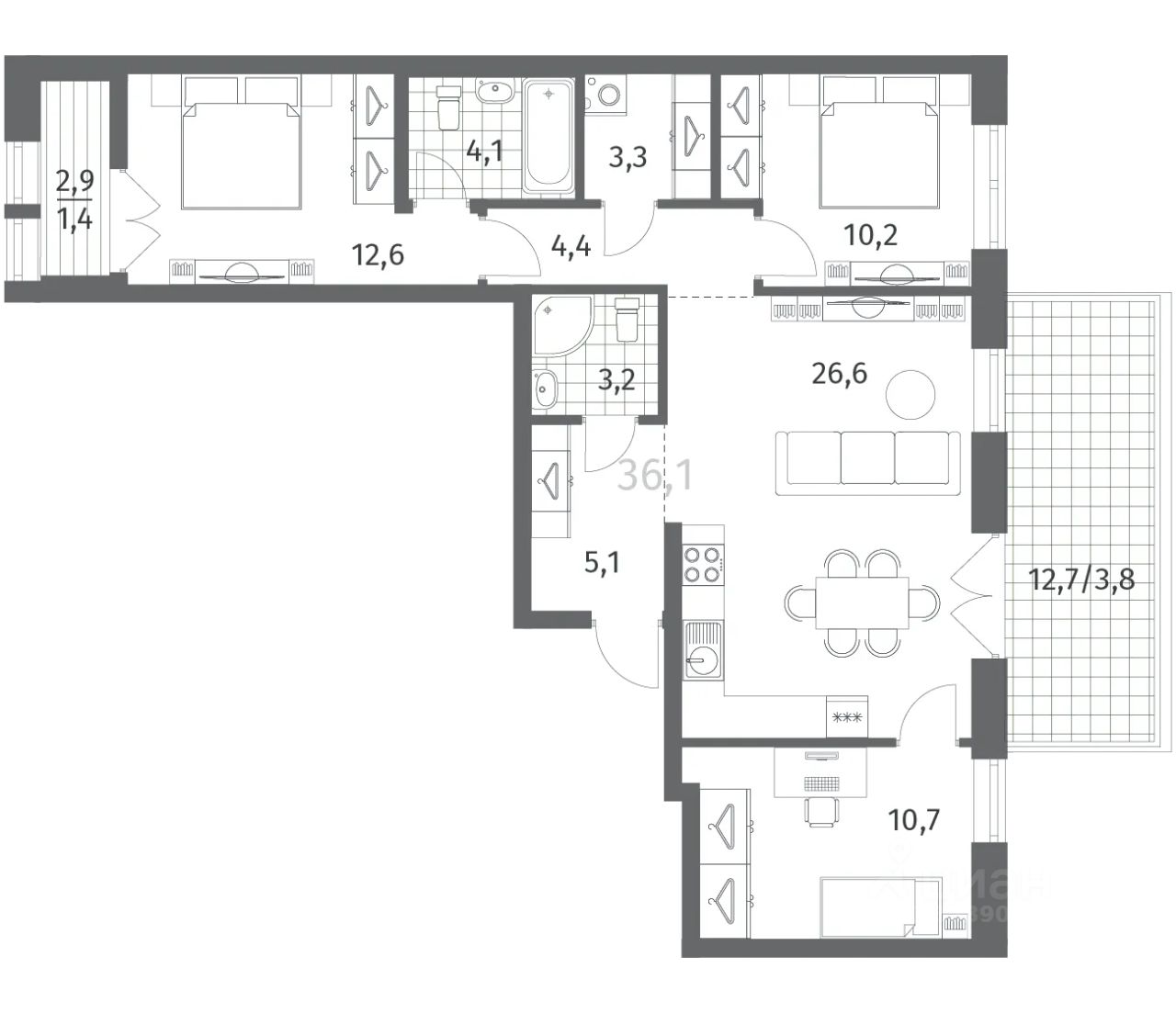 В объявлении указана стоимость квартиры при 100% оплате. При других формах оплаты - базовую стоимость квартиры уточняейте на официальном сайте компании или у менеджера отдела продаж. Срок ввода в эксплуатацию Лот 3: 4 кв. 2026 г.