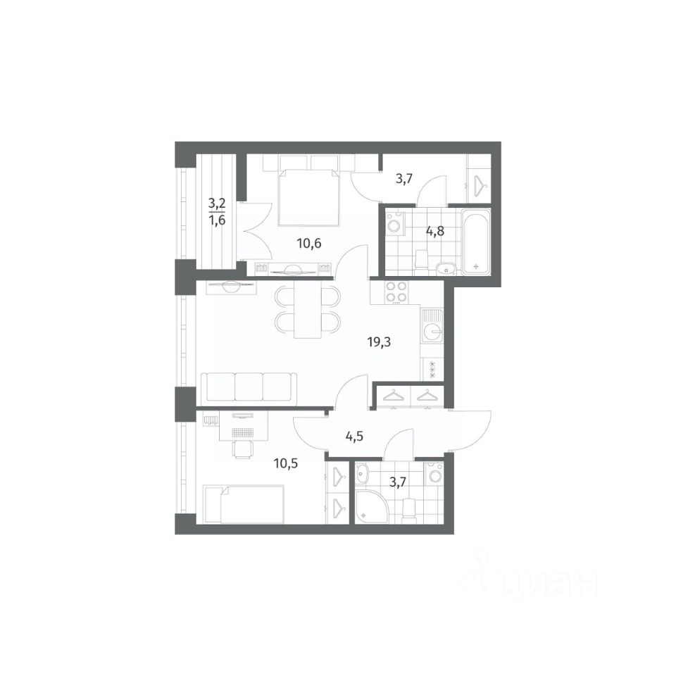 Продается квартира площадью 58.75 м²