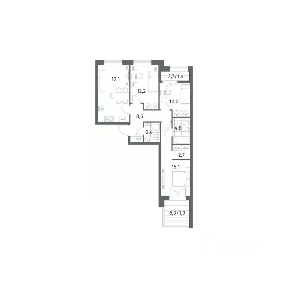 Продается квартира площадью 79.06 м²