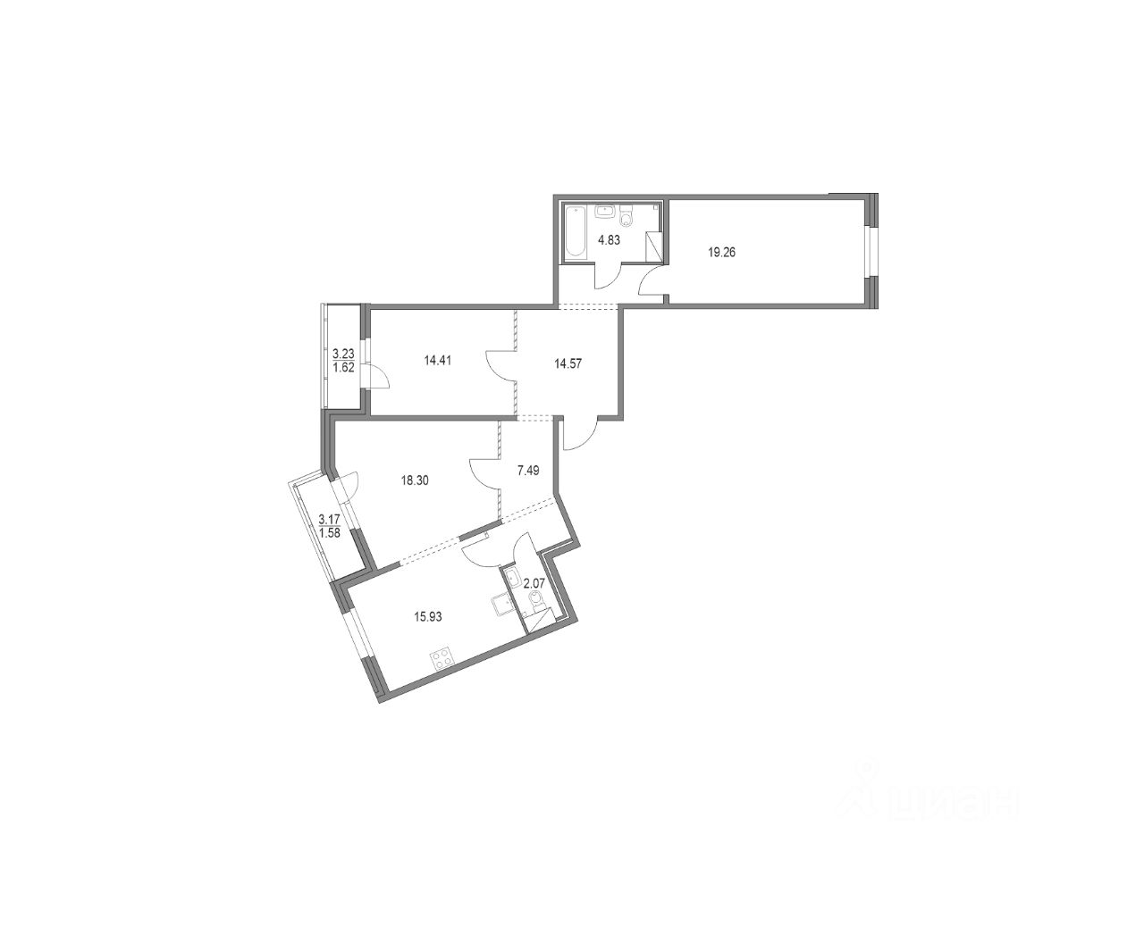 Продаётся просторная трёхкомнатная квартира в Санкт-Петербурге, расположенная по адресу: Коломяжский проспект, 11. Квартира находится на 8-м этаже современного 19-этажного дома, построенного в 2023 году. Общая площадь составляет 100 кв. м, из которых 51.97 кв. м жилая площадь, а кухня занимает 15.93 кв. м. Высота потолков 2.75 метра, что создаёт ощущение простора. Окна выходят как во двор, так и на улицу, что обеспечивает хорошую освещённость.