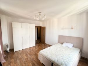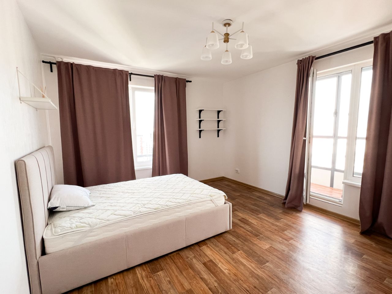 - Спальня с выходом на лоджию обставлена двуспальной кроватью с хорошим матрасом и удобным платяным шкафом