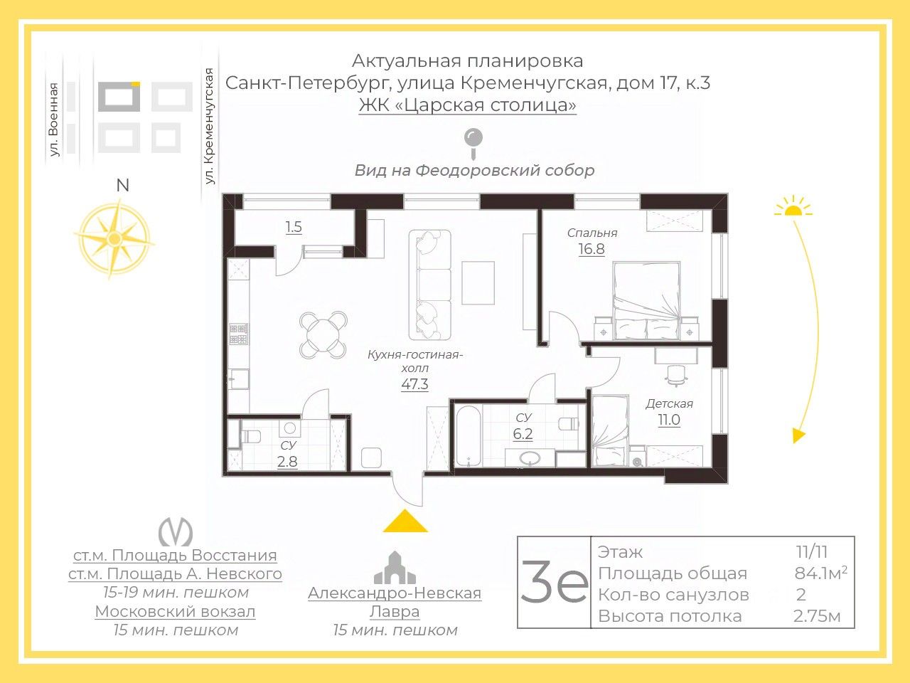Двусторонняя квартира общей площадью 84,1 кв.м с таким функционалом: