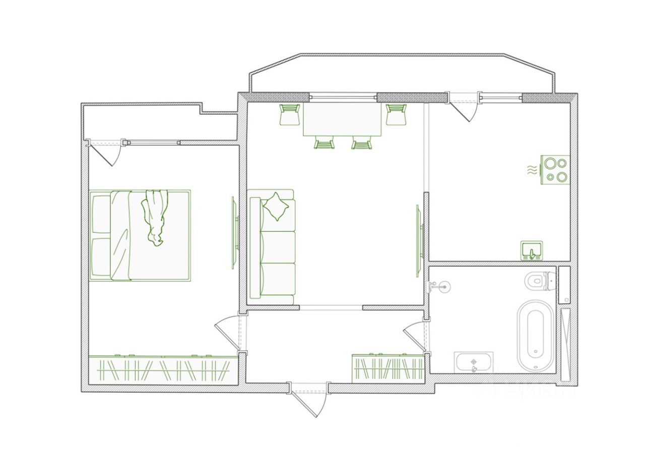 Площадь квартиры с учетом лоджий 63,76 м2.
