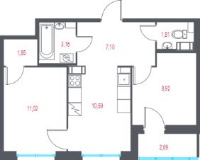 Квартира 66 в корпусе 1 от застройщика в ЖК "Город-спутник Южный"