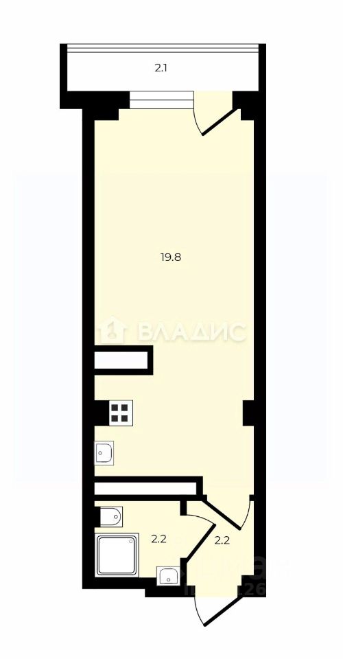 -Жилая площадь 19,8 м² плюс уютная застекленная лоджия 2,1 м²;