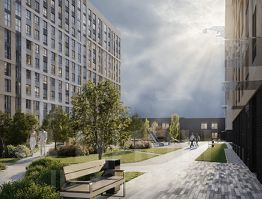- Двор-мечта: Внутренний двор находится на стилобате - это камерное приватное пространство, которое находится под охраной 24 часа. Прямо во дворе разбит пейзажный парк с живым ручьем. Здесь — пейзажный сад, шезлонги, качели, спортивные зоны и огромные песочницы.