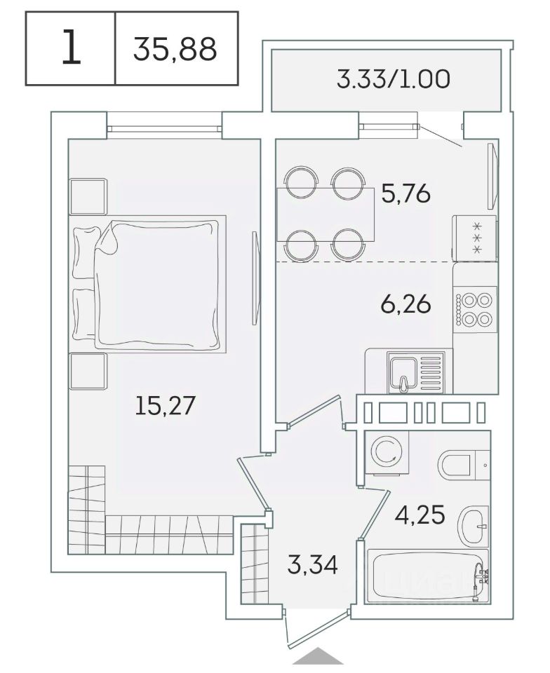 Продаётся 1-комнатная квартира в сданном доме (Графская, 6к4 (Корпус 1)), срок сдачи: I-кв. 2024, общей площадью 35 кв.м., на 10 этаже. Расположение, транспортная доступность
