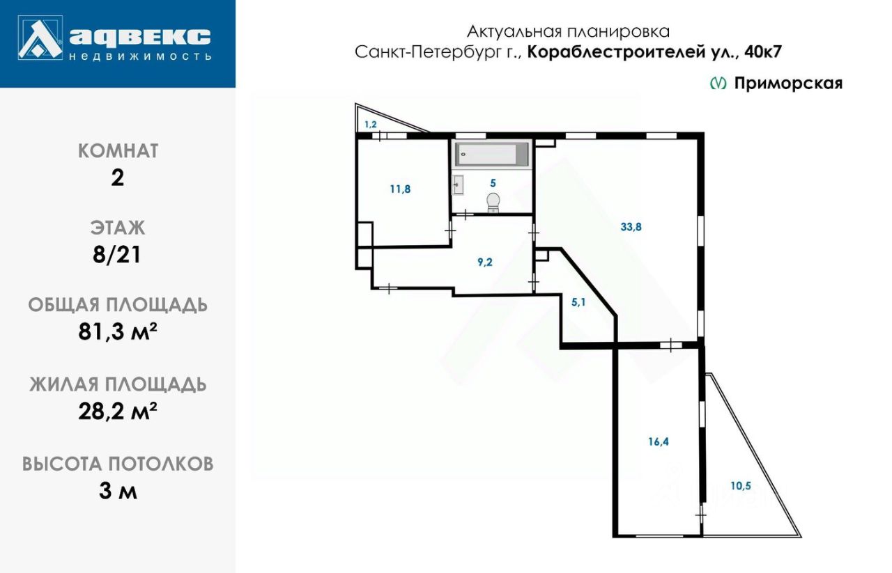 Продаётся просторная евротрёшка площадью 81,3 квадратных метров в престижном районе Петербурга — на Васильевском острове. Уютный дворик с установленным шлагбаумом обеспечивает спокойствие и безопасность, а близость станции метро Приморская позволяет добраться всего за 15 минут неспешной прогулки. Дом оборудован всеми удобствами современного проживания: один подъезд, четыре комфортабельных лифта (два грузовые и два пассажирские), консьерж, паркинг. Общий тамбур - поставлена металлическая дверь на две квартиры. Управление домом осуществляет профессиональное товарищество собственников жилья (ТСЖ).