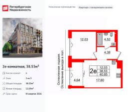 Уникальная, функциональная европланировка, большая кухня-гостиная 17.6 м², просторная прихожая 4.38 м². Общая площадь квартиры - 38.53 м², жилая 12.03 м².