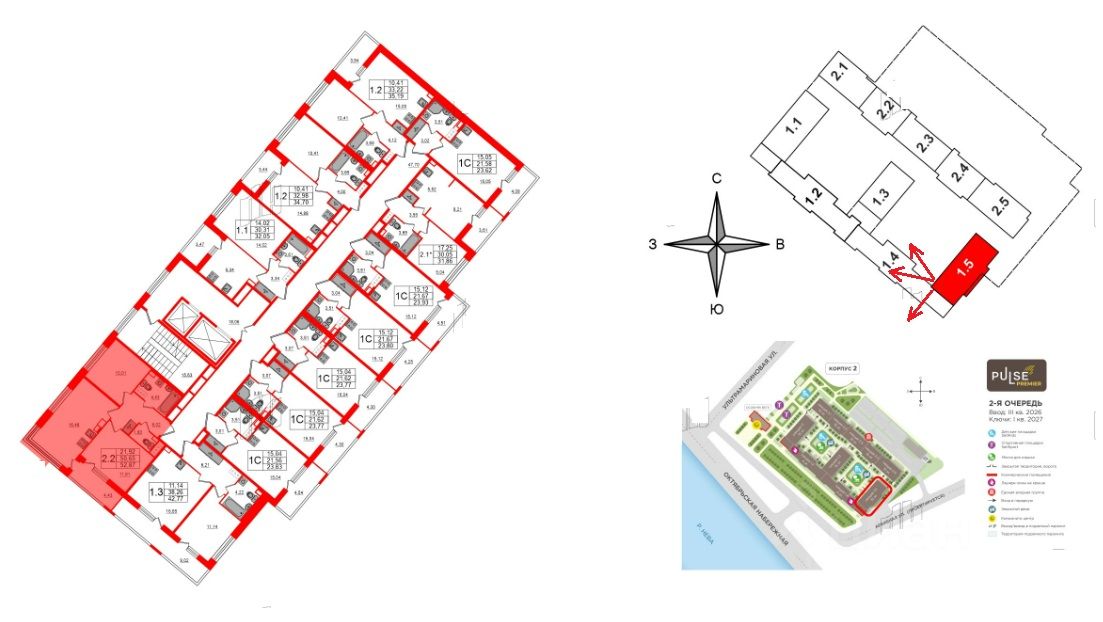 Квартира расположена на 9ом этаже 15ти этажного дома в Пульс Примьер Pulse Premier, корпус 3.