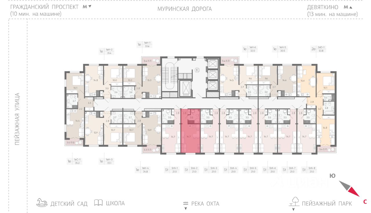 • 20 минут на авто до станций "Гражданский проспект" и "Академическая";