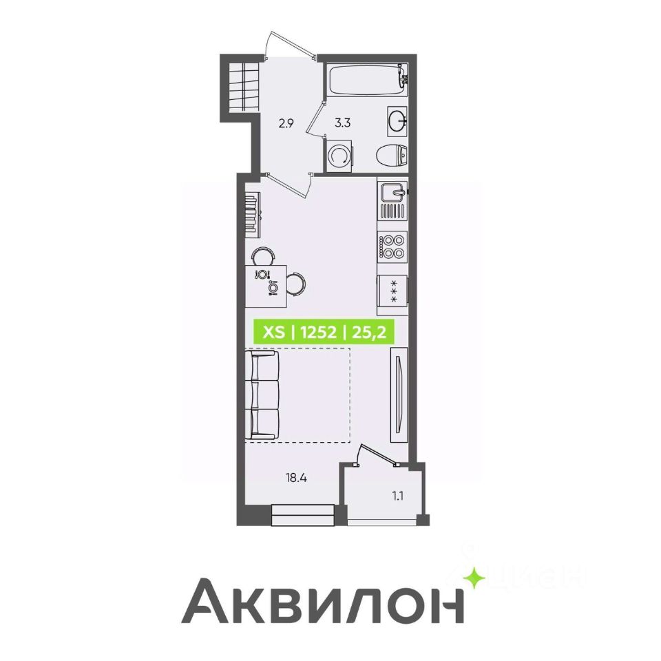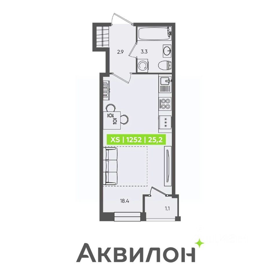 Общая площадь25,2 м²