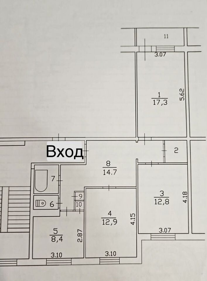 - комнаты 12,8 + 12,9 +17,3 кв.м.