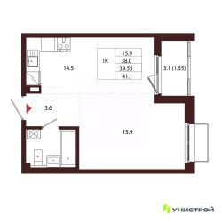 Общая площадь39,55 м²
