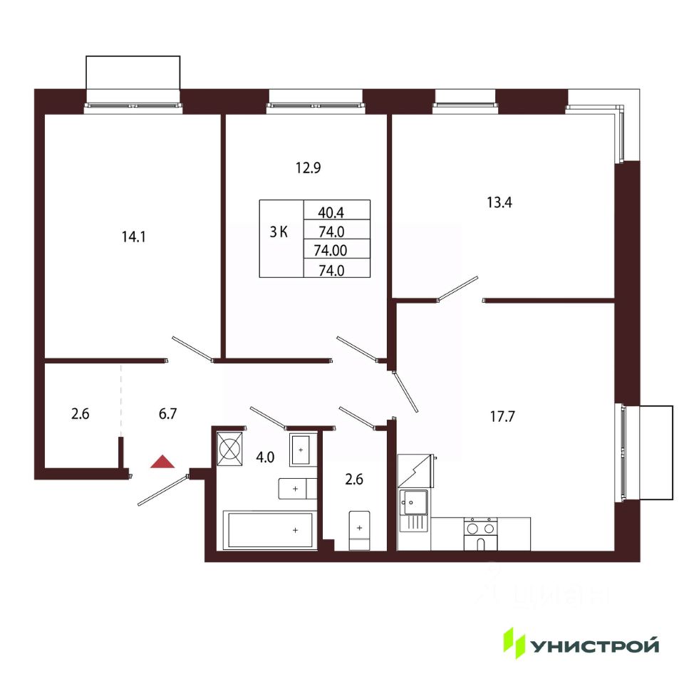 Общая площадь74 м²