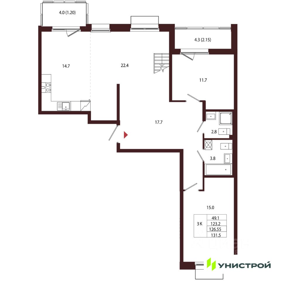 Продается 3-комн. квартира, 126,55 м²
