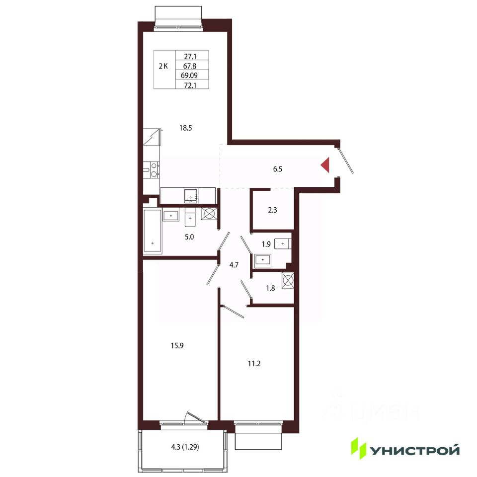Общая площадь69,09 м²