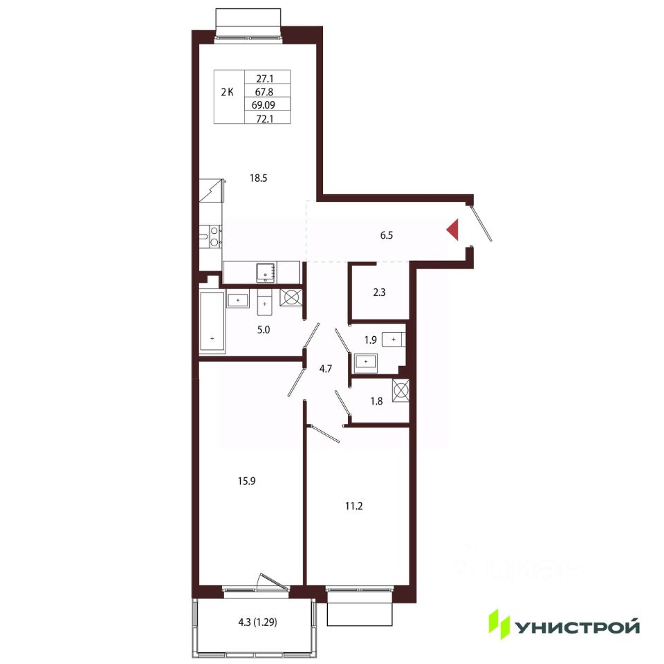 Общая площадь69,09 м²