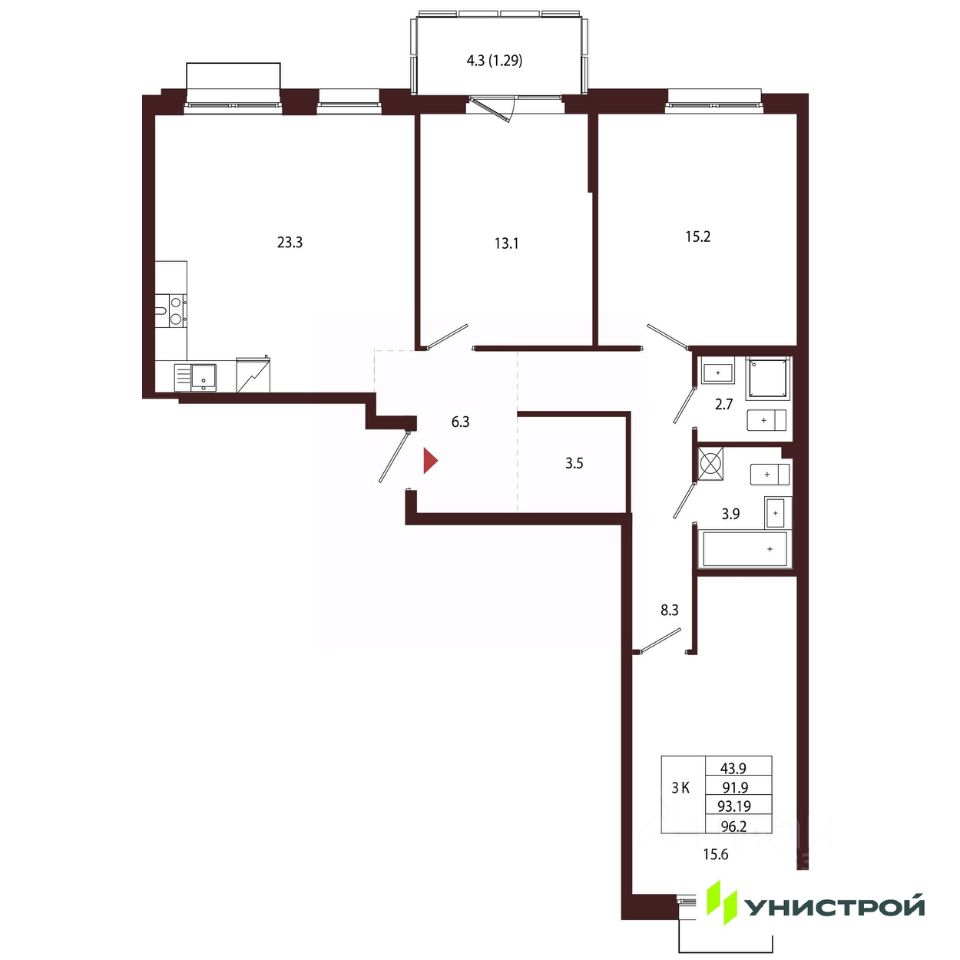 Общая площадь93,19 м²