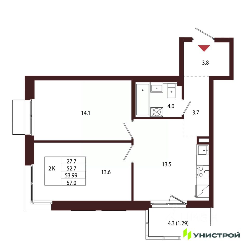 Общая площадь53,99 м²