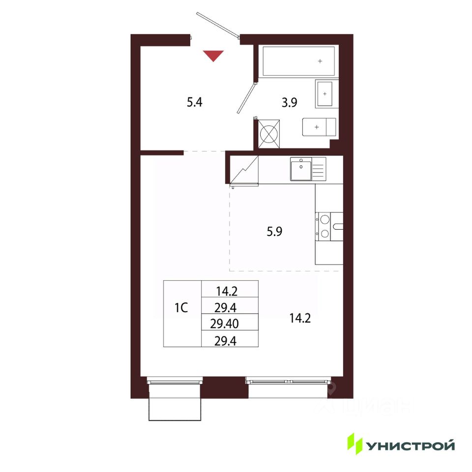 Общая площадь29,4 м²