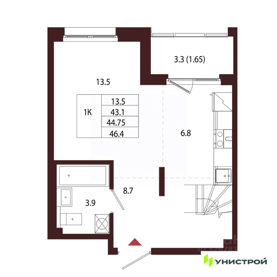 Общая площадь44,75 м²