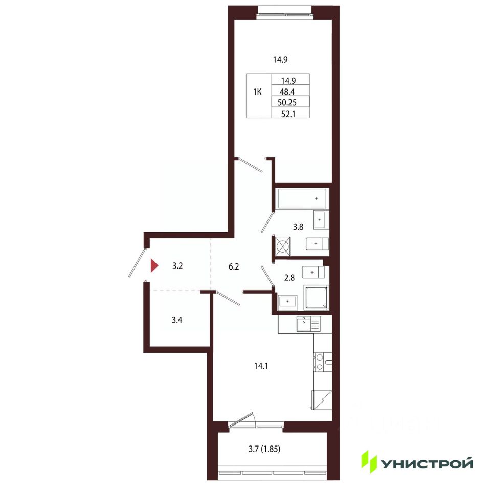 Общая площадь50,25 м²