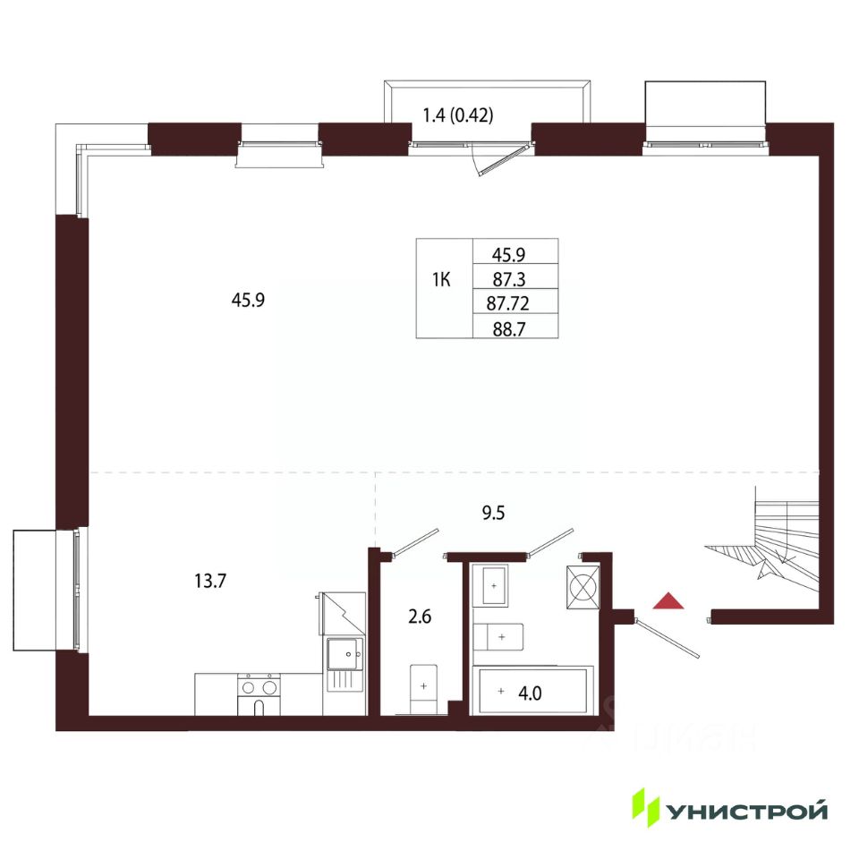 Продается 1-комн. квартира, 87,72 м²