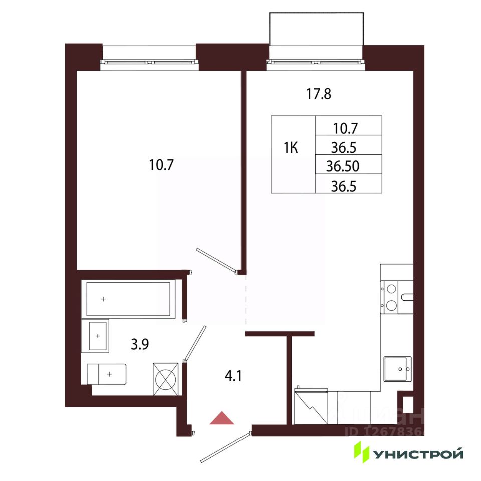 Общая площадь36,5 м²
