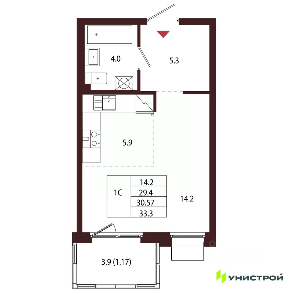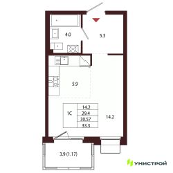 Общая площадь30,57 м²